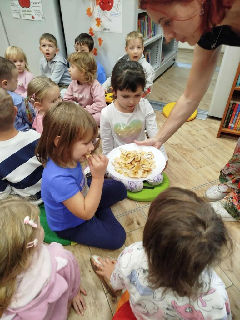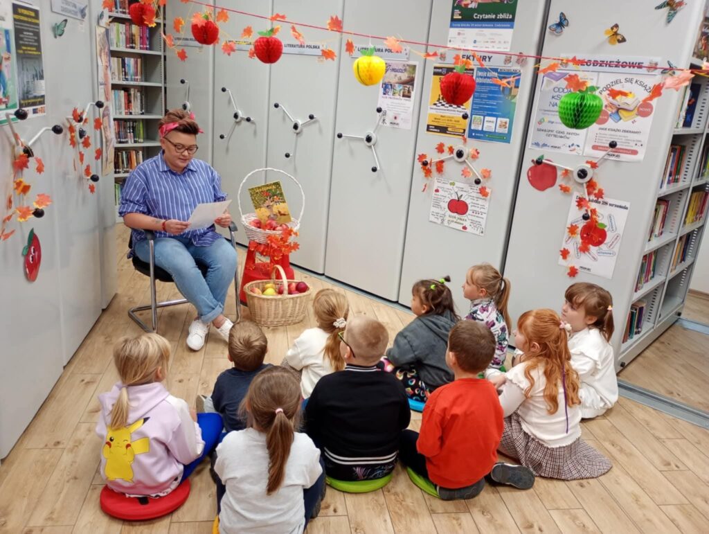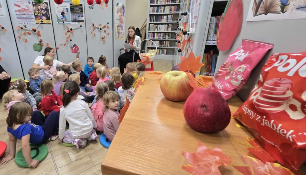 Mieliśmy okazję wysłuchać opowieści czytanych przez specjalnych gości, a także wysłuchać informacji na temat jabłek i sadownictwa. Wszyscy mogliśmy spróbować także jabłek z pobliskich sadów.