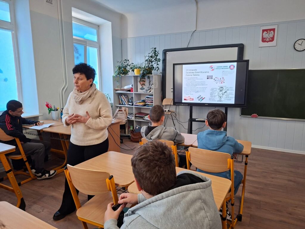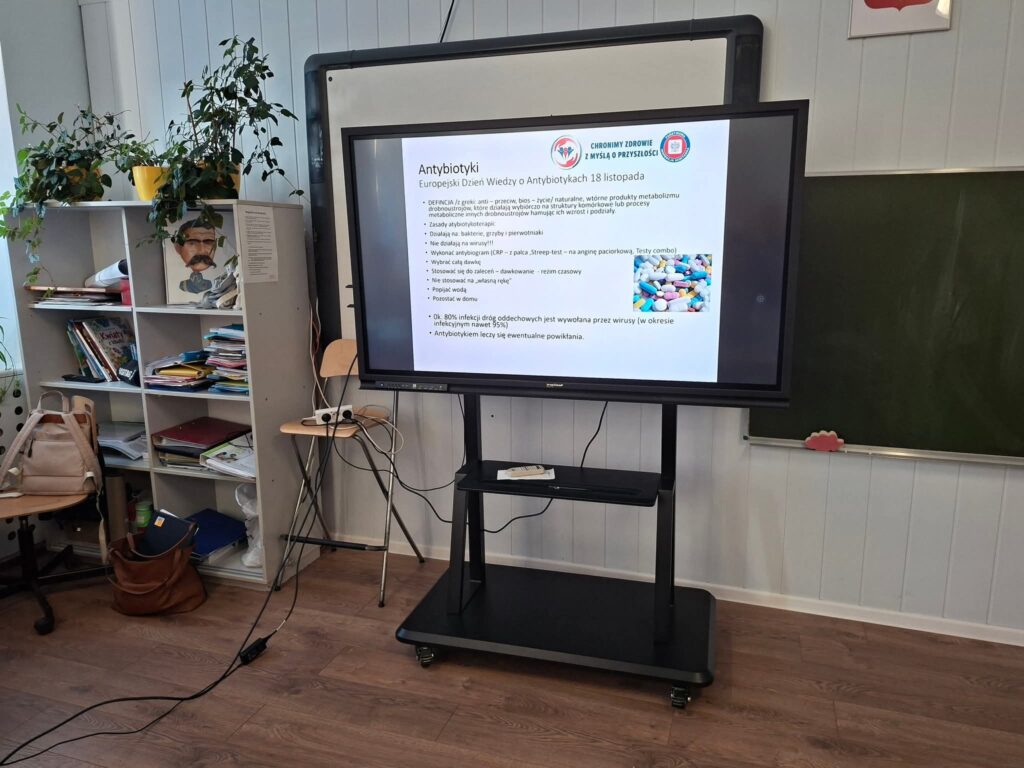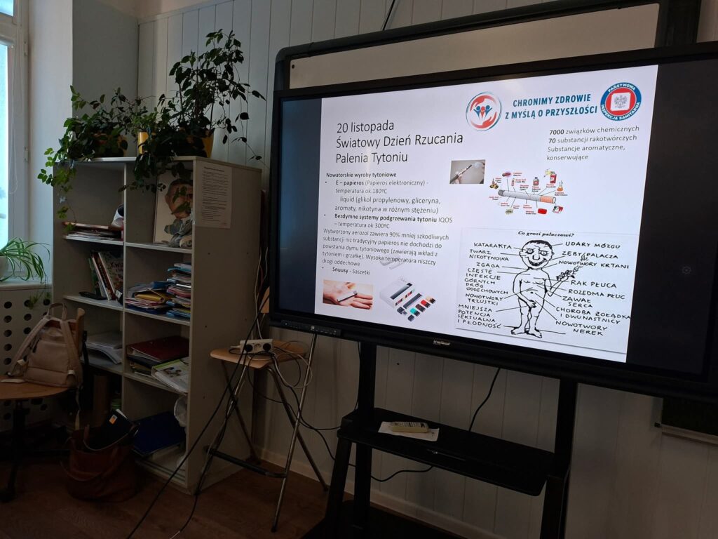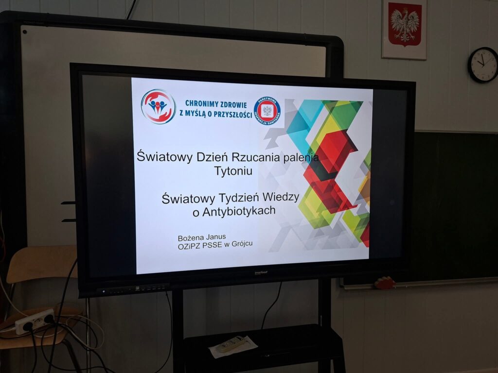 W tym tygodniu przypada Światowy Tydzień Wiedzy o Antybiotykach, a 20 listopada to Światowy Dzień Rzucania Palenia Tytoniu. W ramach działań profilaktycznych związanych z tymi zagadnieniami w naszej szkole gościła dzisiaj z prelekcją p. Bożena Janus z Powiatowej Stacji Sanitarno-Epidemiologicznej w Grójcu, która spotkała się z uczniami klas 5, 6 oraz 7 i przedstawiła najnowsze informacje związane ze szkodliwością tytoniu oraz wpływem nadużywania antybiotyków na organizm człowieka.