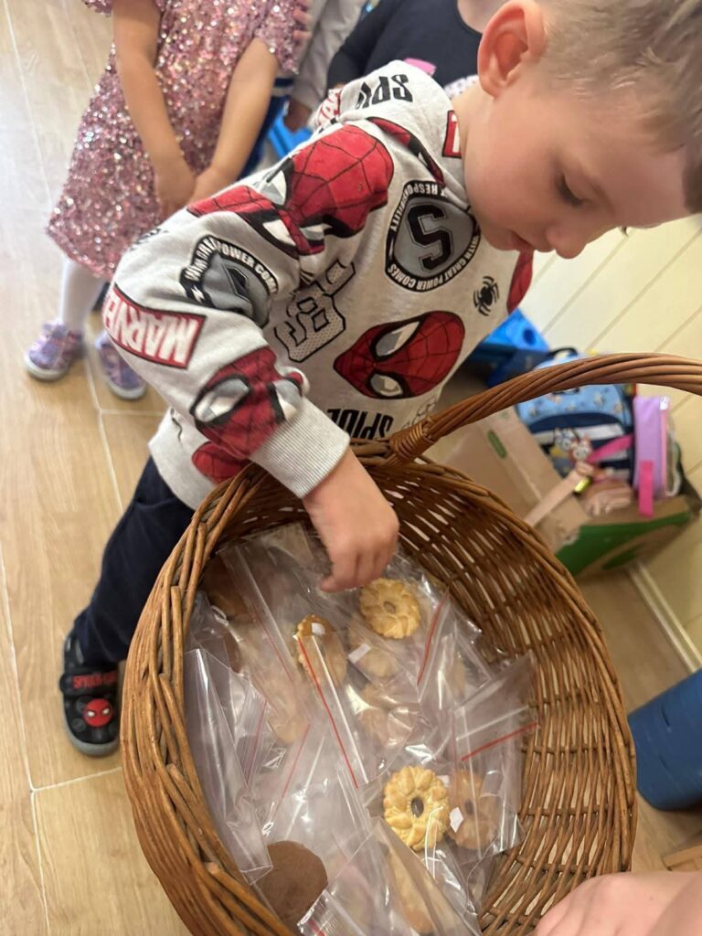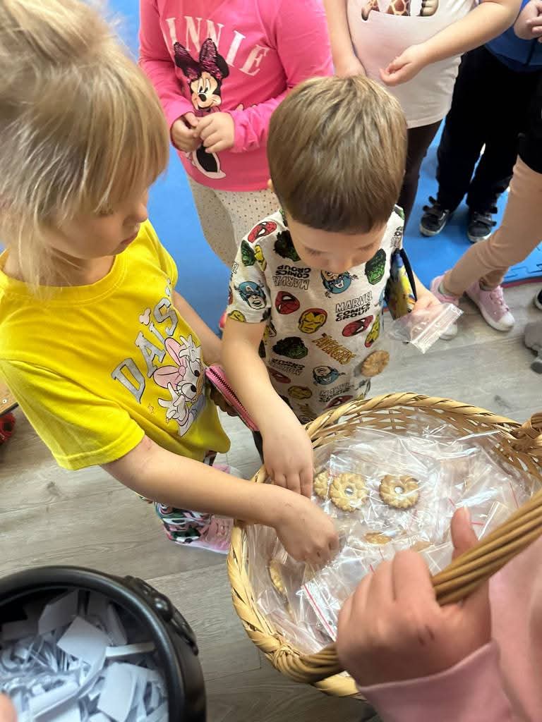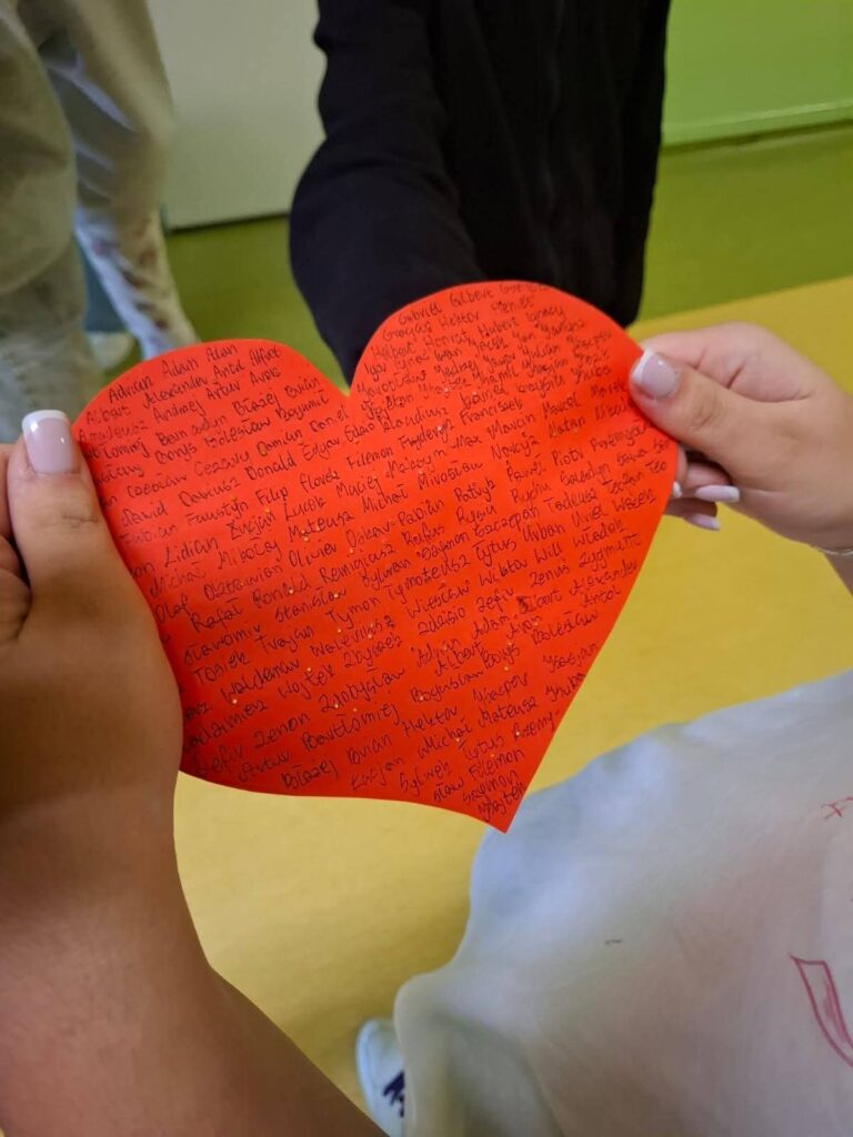 Najmłodsi z ogromną ciekawością przebijali papierowe serduszka, odkrywając ukryte imiona. Było przy tym wiele emocji i radości — w końcu każdy chciał dowiedzieć się, jakie imię „jest mu pisane”!
