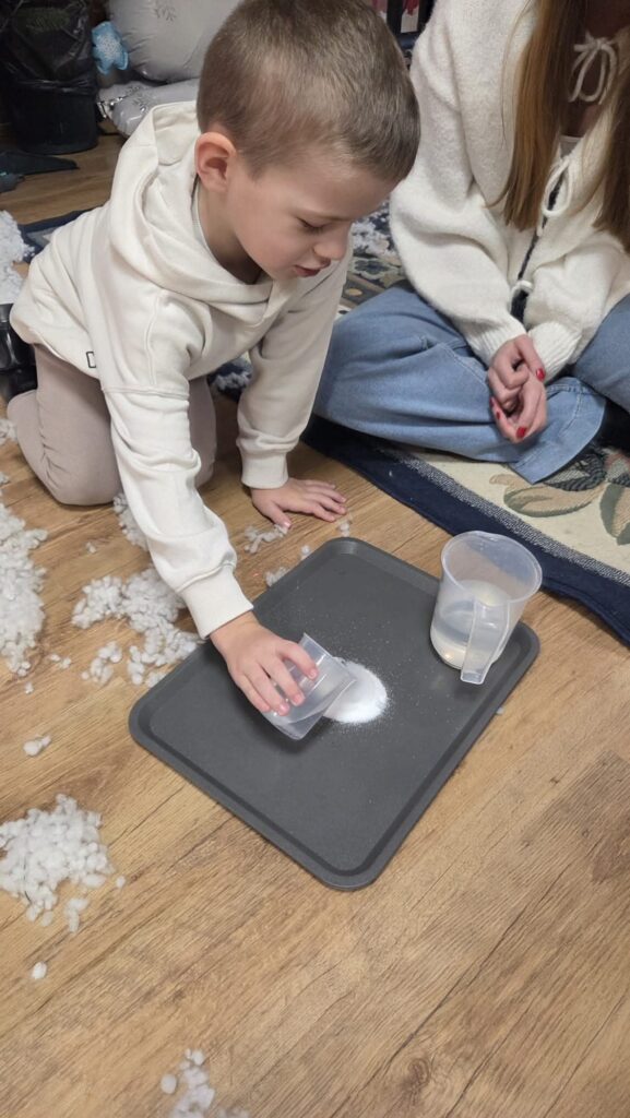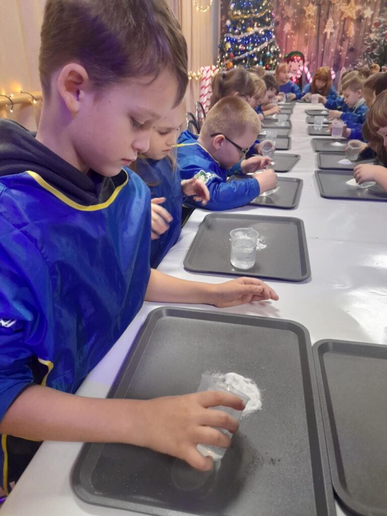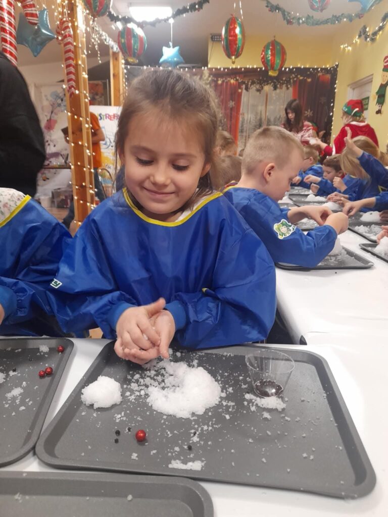 Przeprowadziliśmy świąteczno-zimowe eksperymenty, a na koniec spotkania wszystkich zaskoczyła wizyta niezwykłego gościa-Mikołaja!