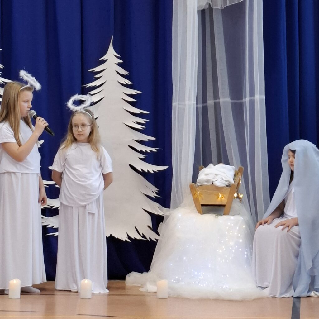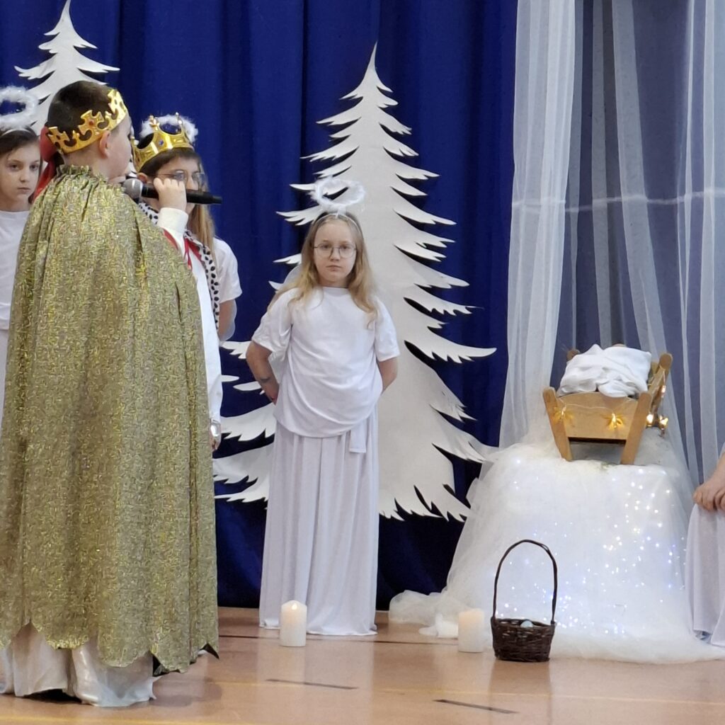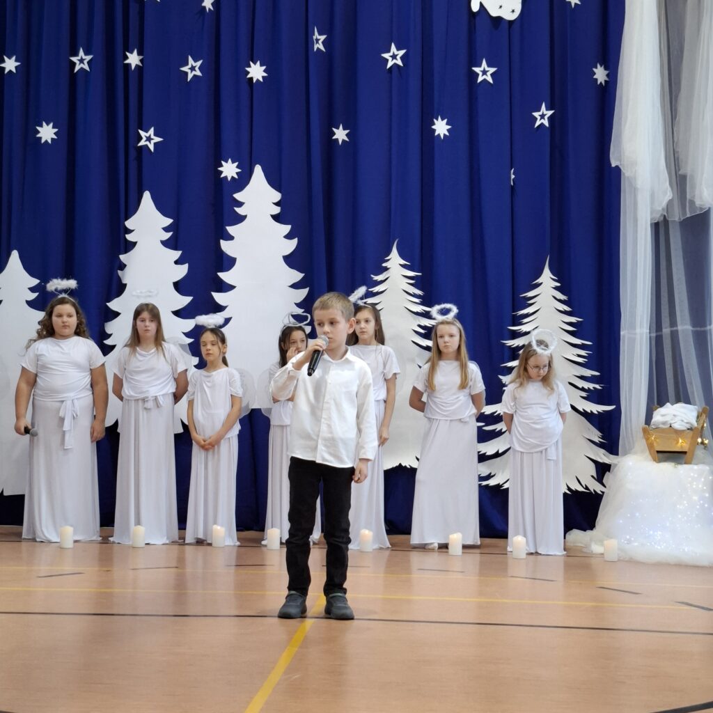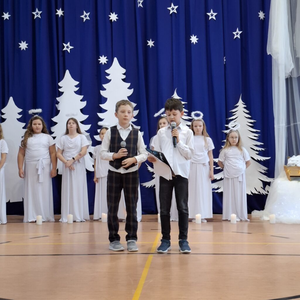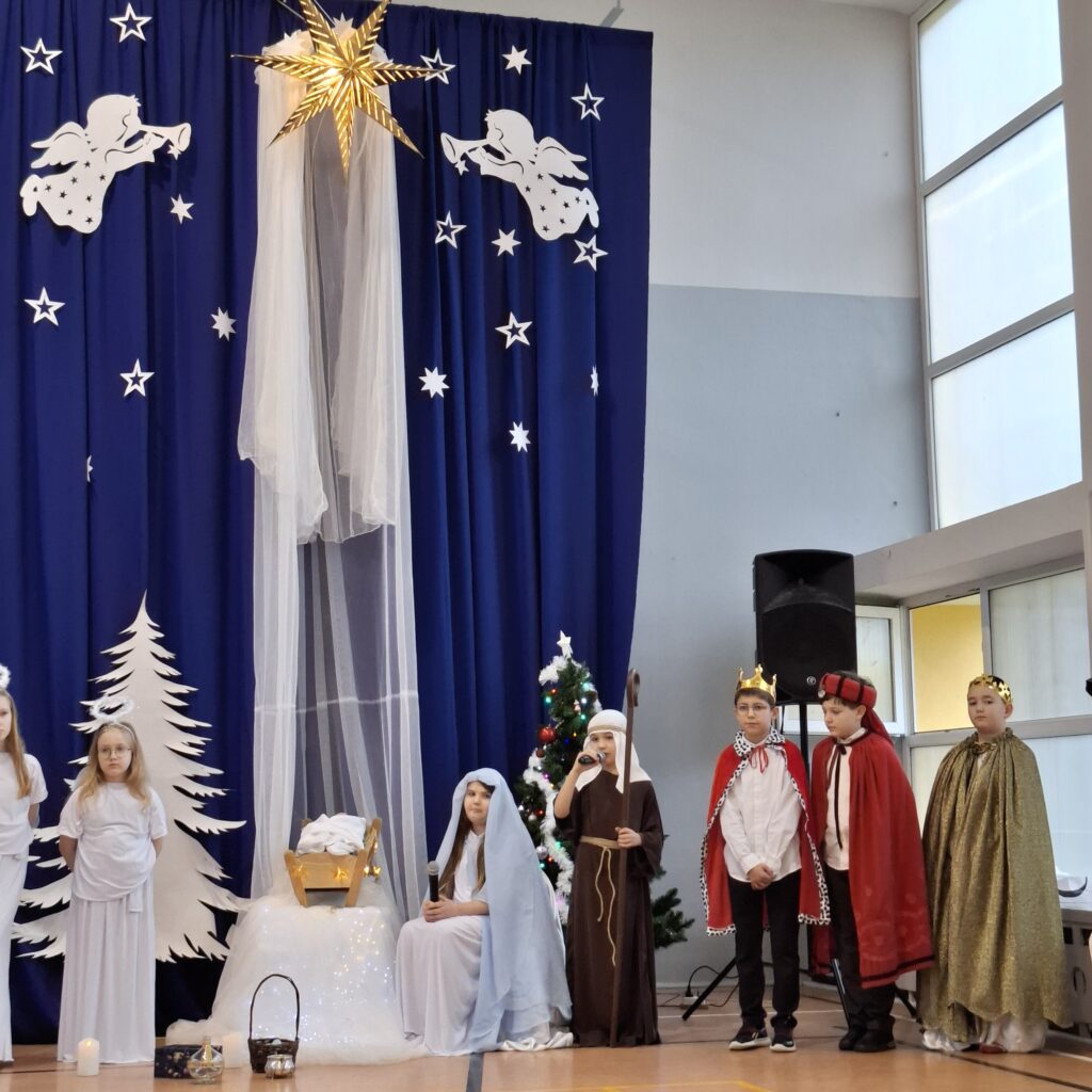 Klasy trzecie, pod czujną opieką wychowawców p. Żanety Chaberskiej i p. Małgorzaty Dudzińskiej przygotowały wyjątkowy apel szkolny – Jasełka w przepięknym, świątecznym klimacie.