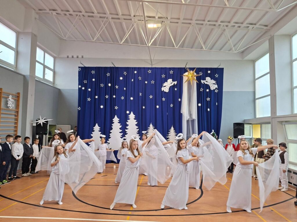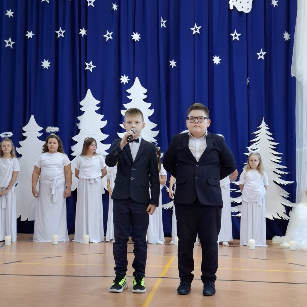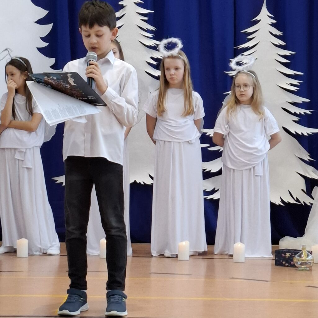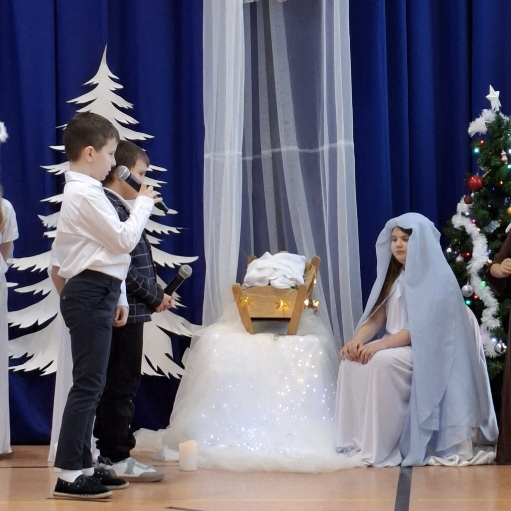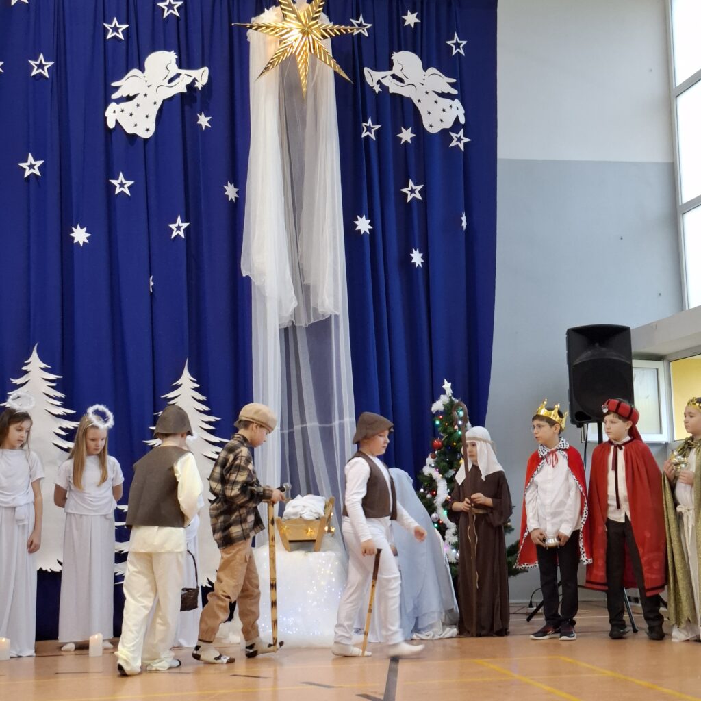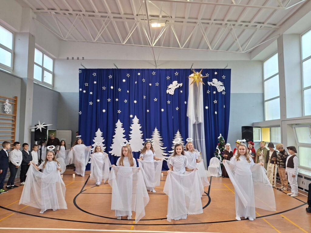 Klasy trzecie, pod czujną opieką wychowawców p. Żanety Chaberskiej i p. Małgorzaty Dudzińskiej przygotowały wyjątkowy apel szkolny – Jasełka w przepięknym, świątecznym klimacie.