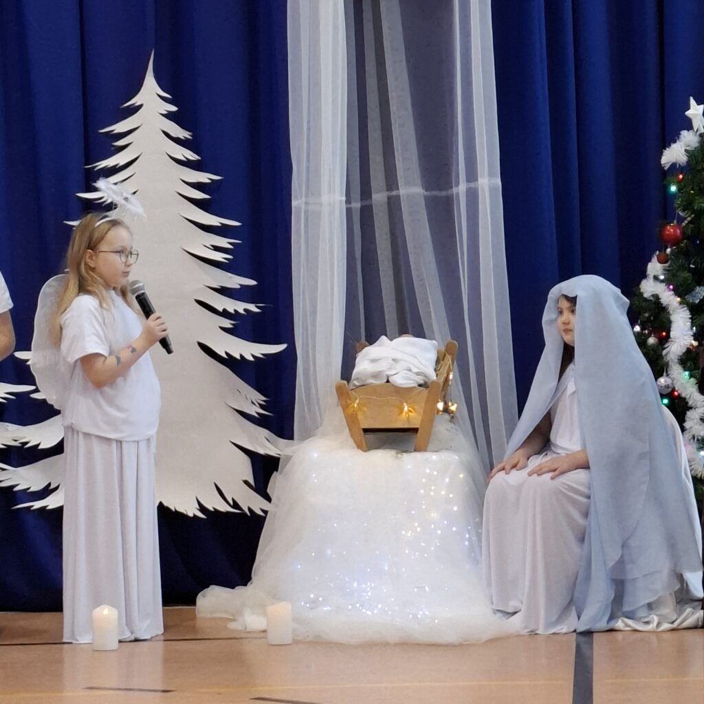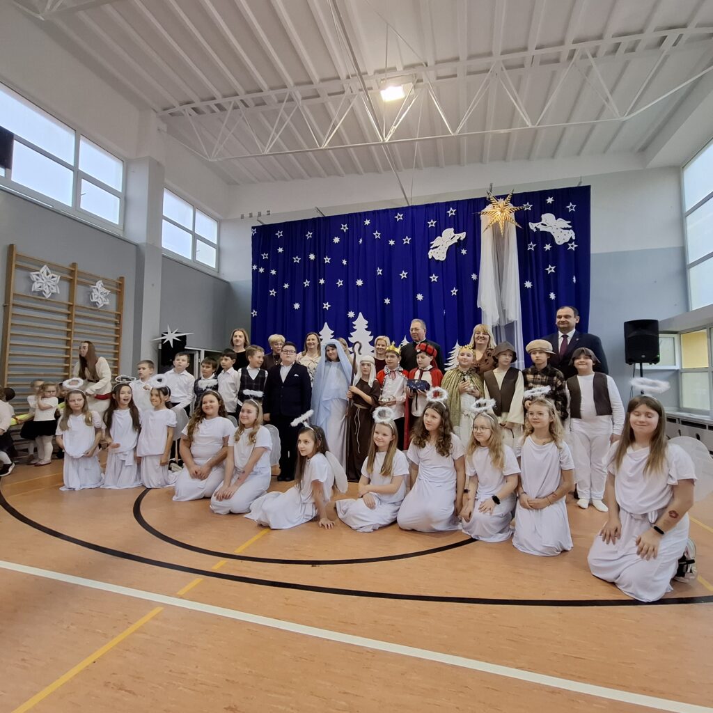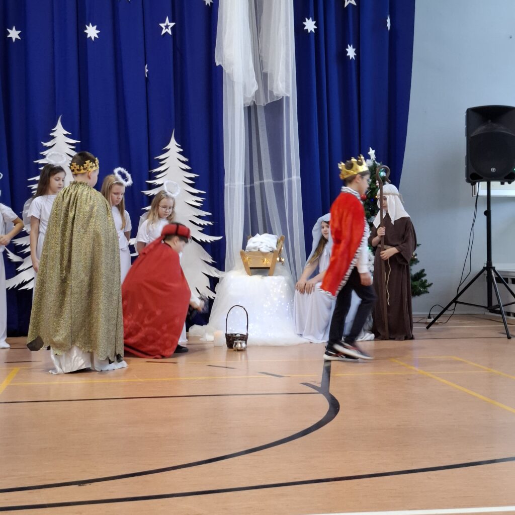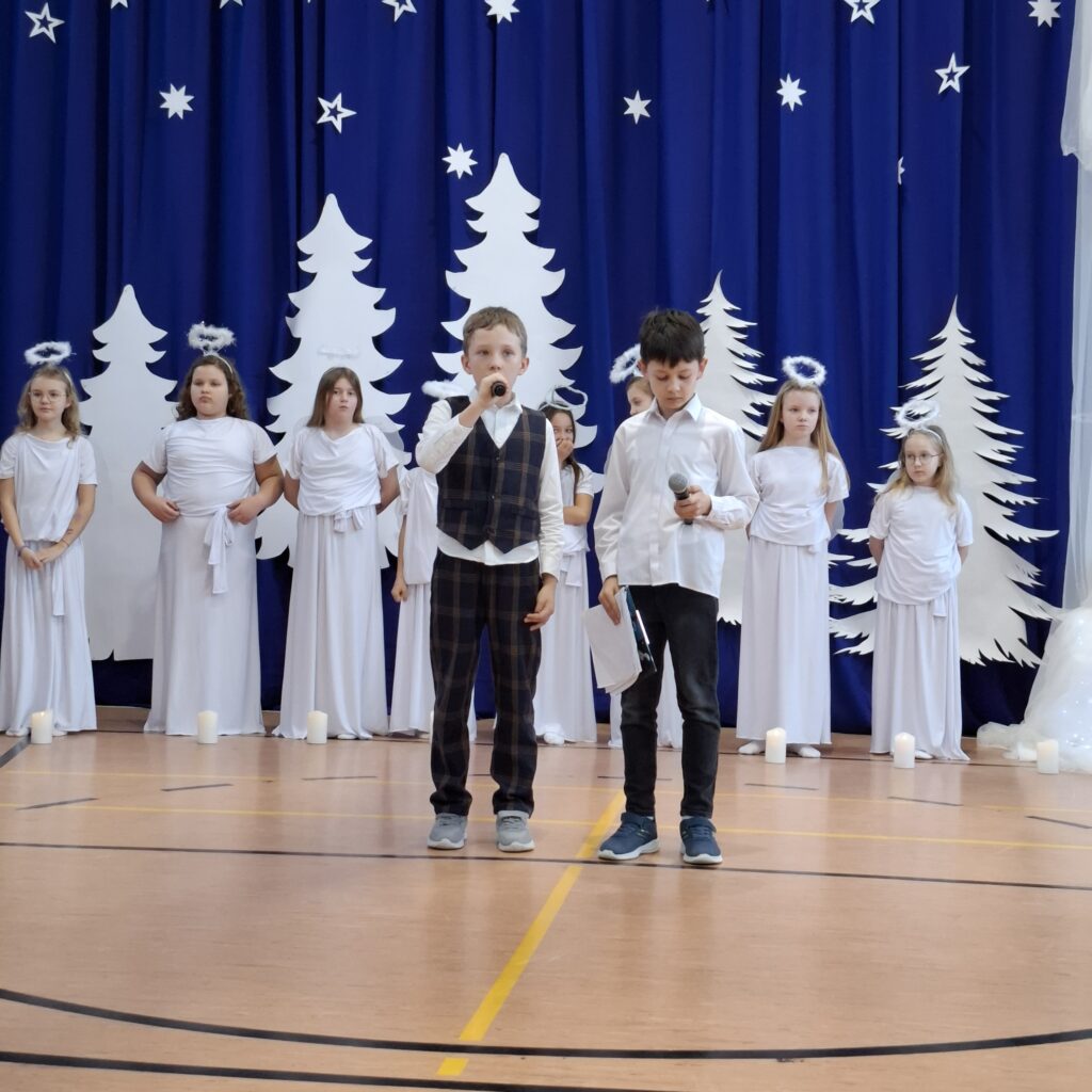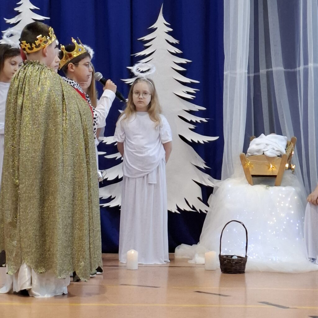 Klasy trzecie, pod czujną opieką wychowawców p. Żanety Chaberskiej i p. Małgorzaty Dudzińskiej przygotowały wyjątkowy apel szkolny – Jasełka w przepięknym, świątecznym klimacie.