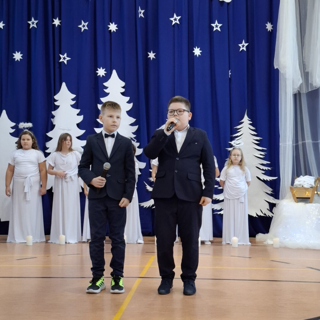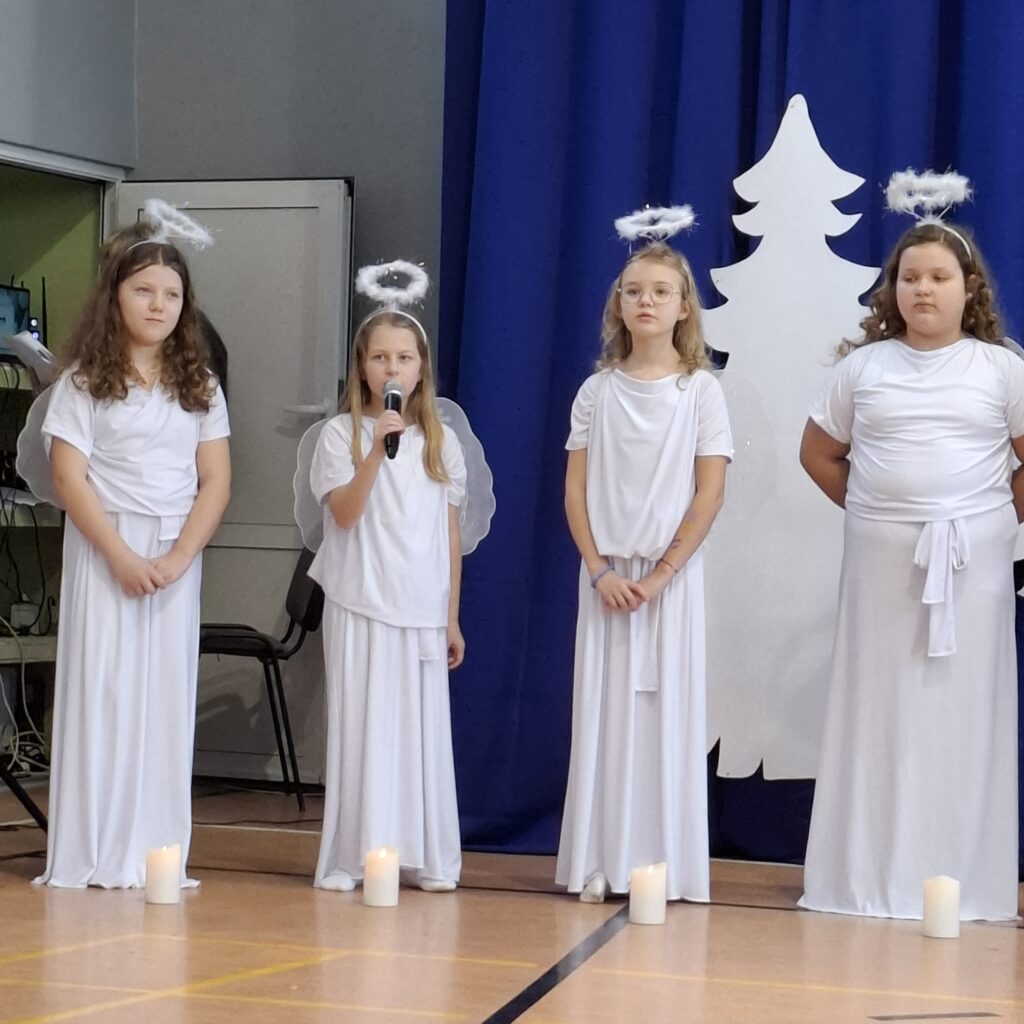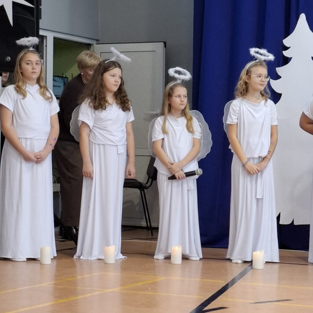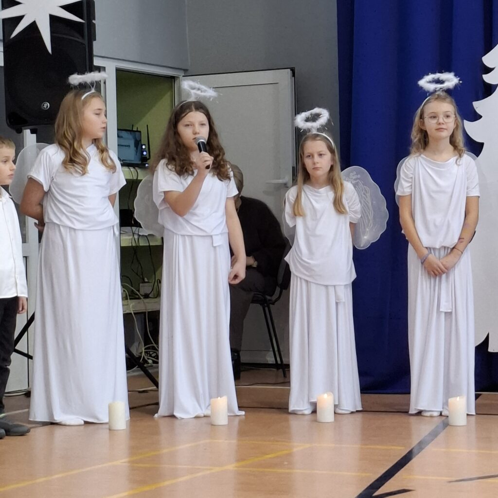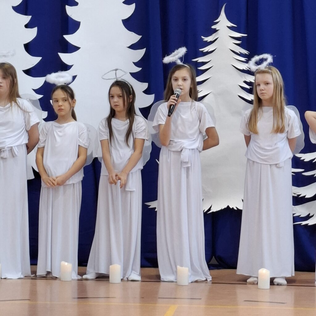 Klasy trzecie, pod czujną opieką wychowawców p. Żanety Chaberskiej i p. Małgorzaty Dudzińskiej przygotowały wyjątkowy apel szkolny – Jasełka w przepięknym, świątecznym klimacie.