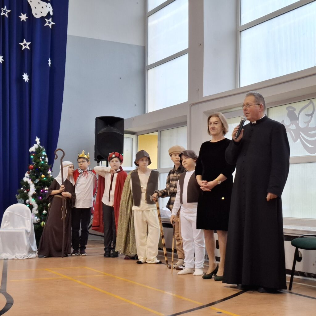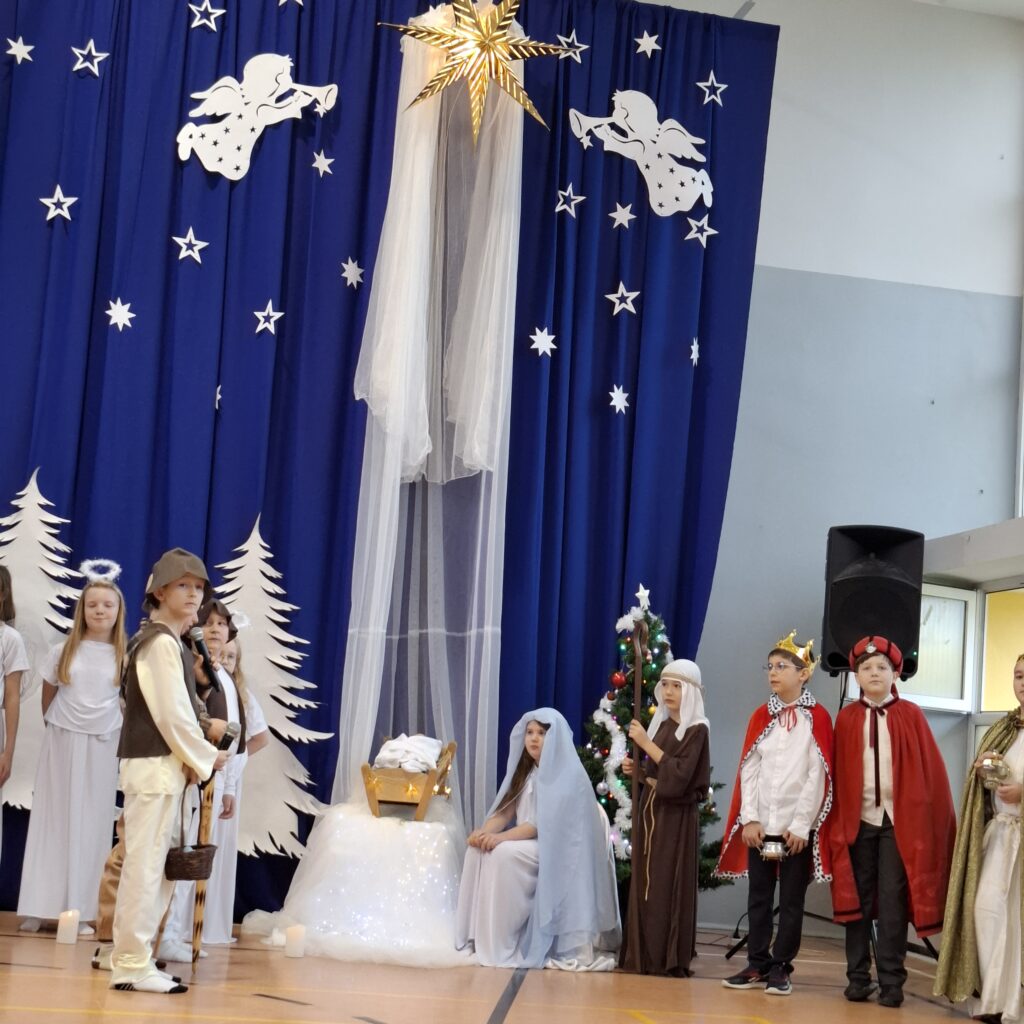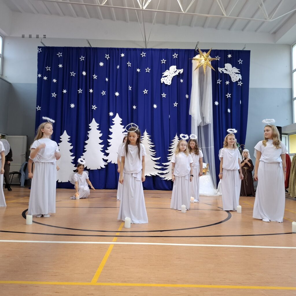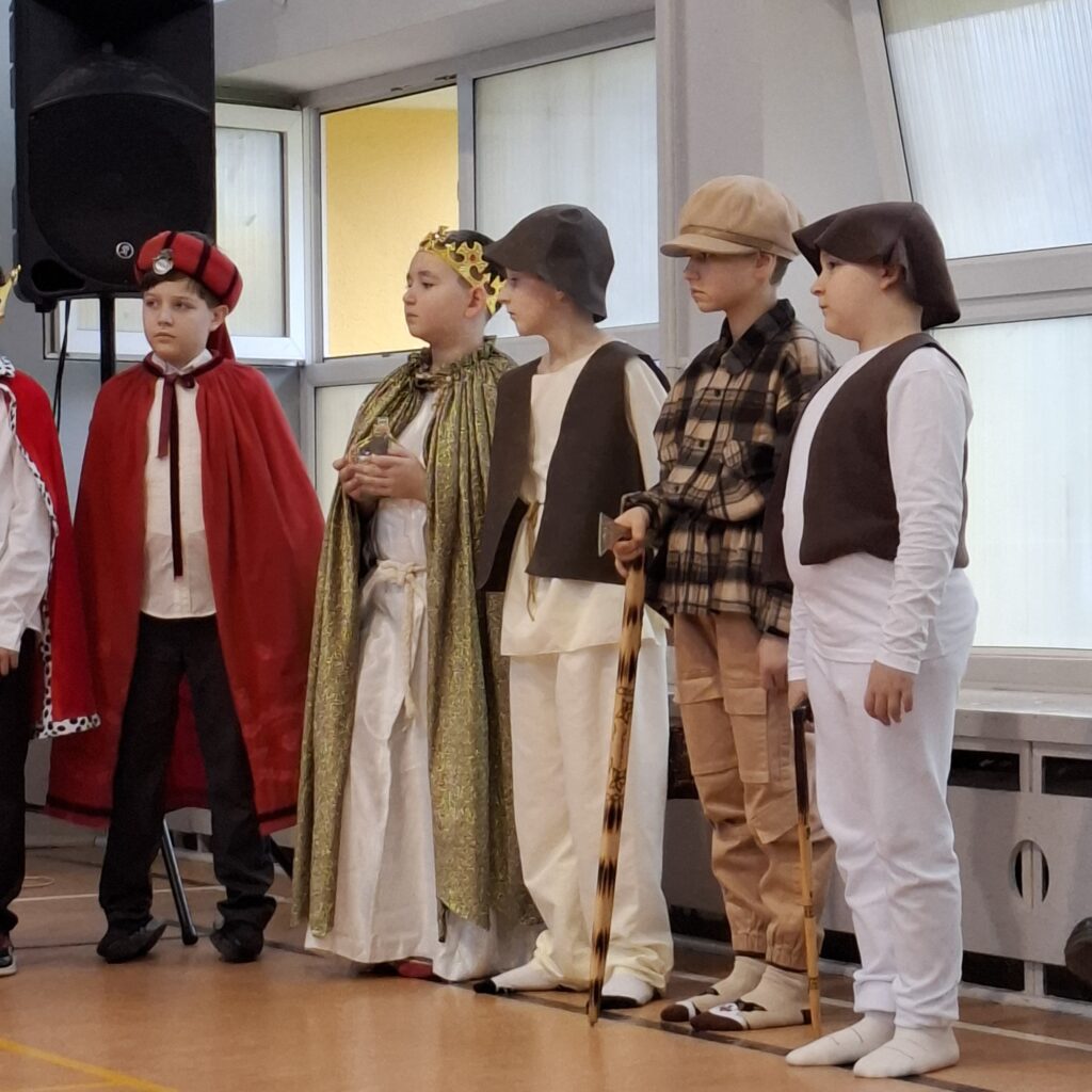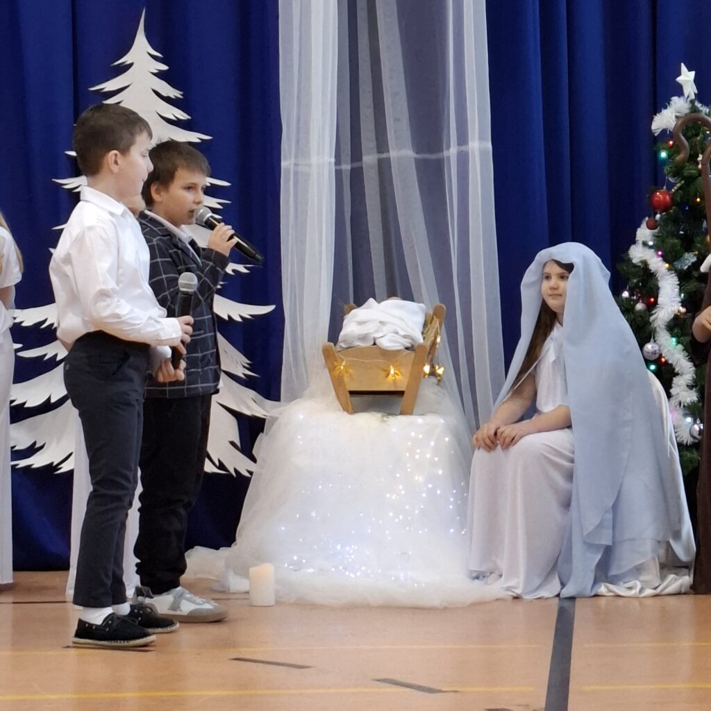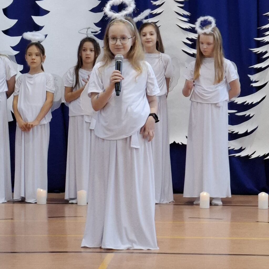 Klasy trzecie, pod czujną opieką wychowawców p. Żanety Chaberskiej i p. Małgorzaty Dudzińskiej przygotowały wyjątkowy apel szkolny – Jasełka w przepięknym, świątecznym klimacie.
