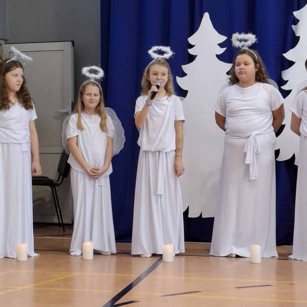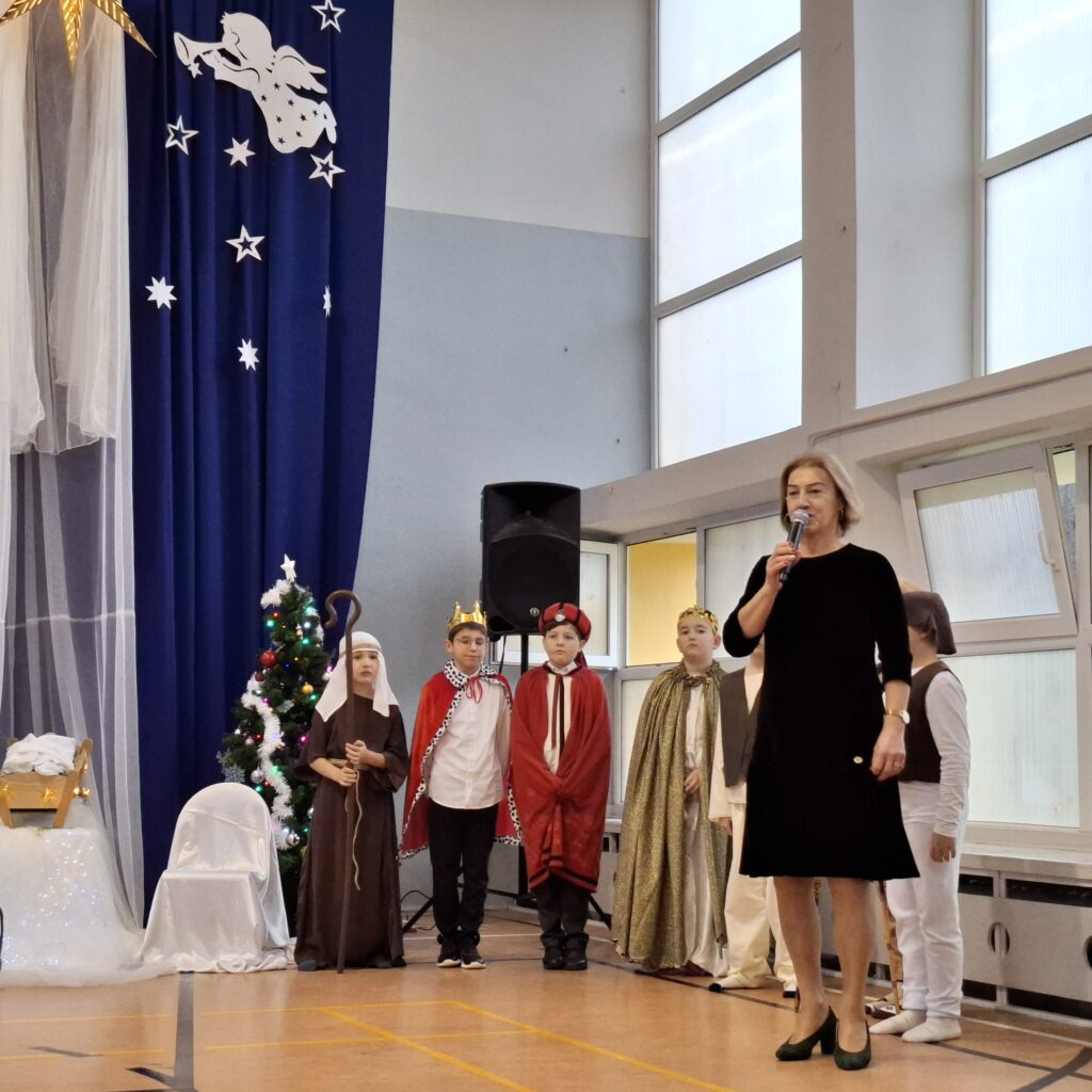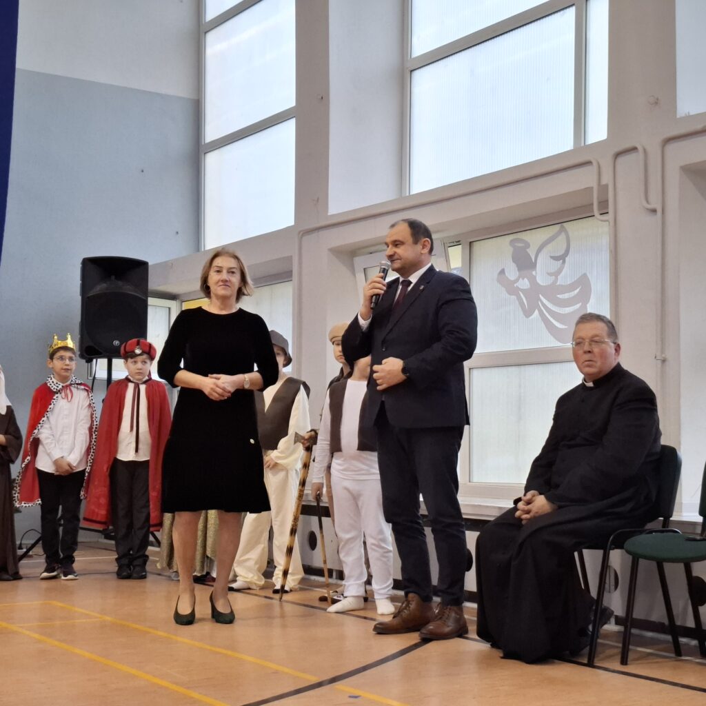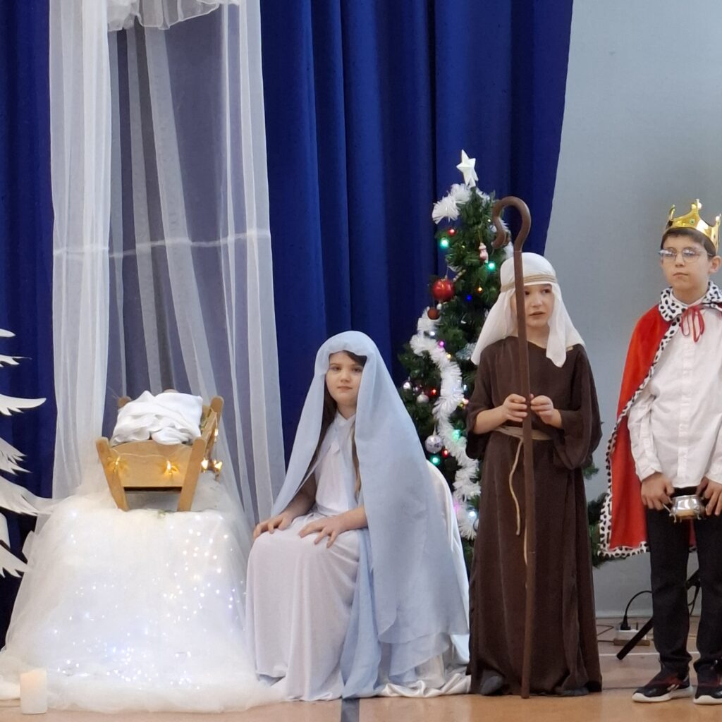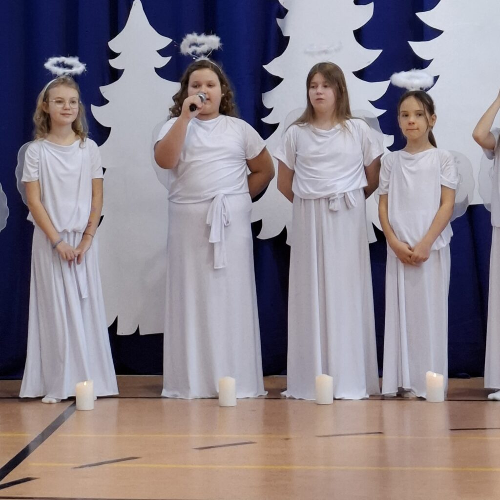 Klasy trzecie, pod czujną opieką wychowawców p. Żanety Chaberskiej i p. Małgorzaty Dudzińskiej przygotowały wyjątkowy apel szkolny – Jasełka w przepięknym, świątecznym klimacie.