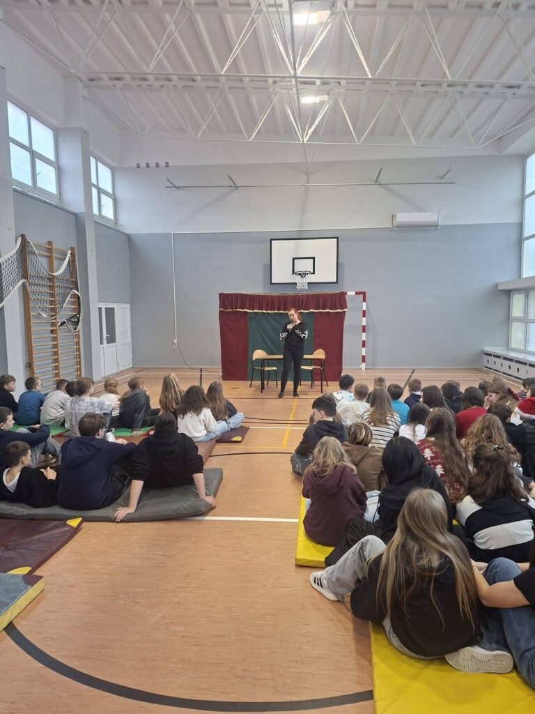 Uczniowie klas V–VIII obejrzeli spektakl profilaktyczny pt.” Szkolna elita” poruszający ważne i aktualne tematy dotyczące relacji rówieśniczych, bezpieczeństwa oraz odpowiedzialnych wyborów.