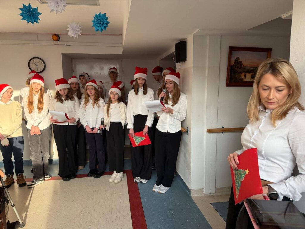 Wolontariusze wręczali własnoręcznie wykonane karty świąteczne oraz pierniki. Był to wyjątkowy czas pełen życzliwości, empatii i budowaniu międzypokoleniowej więzi.