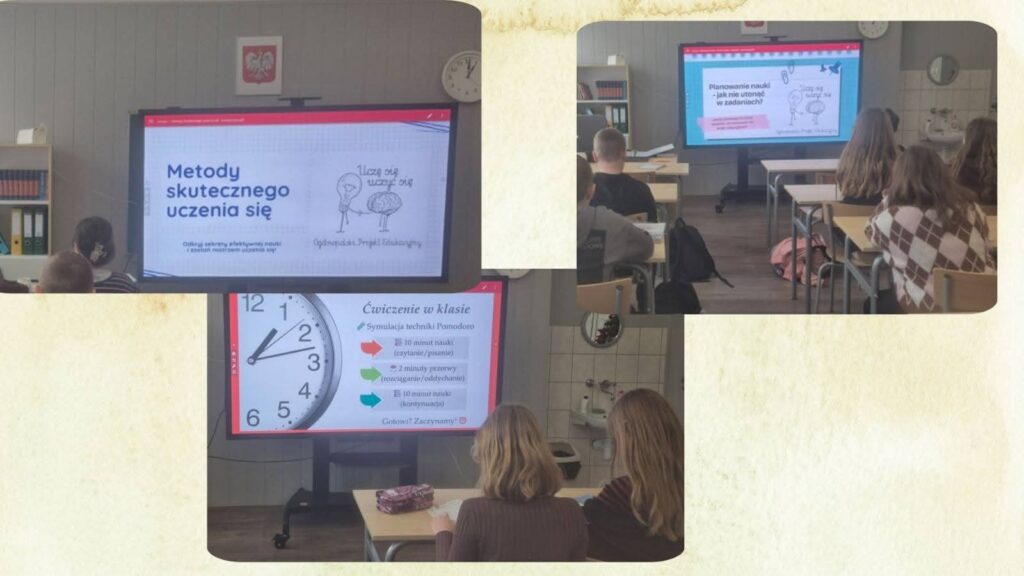 Podczas godzin wychowawczych zrealizowaliśmy projekt „Uczę się uczyć”, w ramach którego uczniowie poznali skuteczne i kreatywne metody nauki.