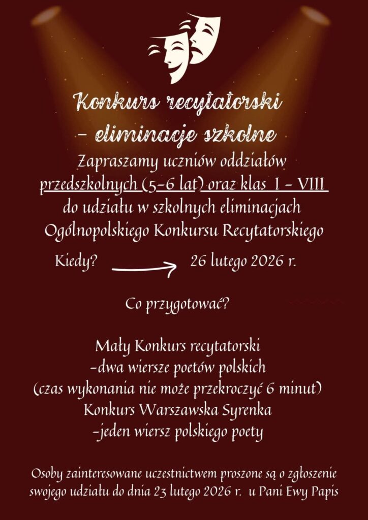 KONKURS RECYTATORSKI – ELIMINACJE SZKOLNE