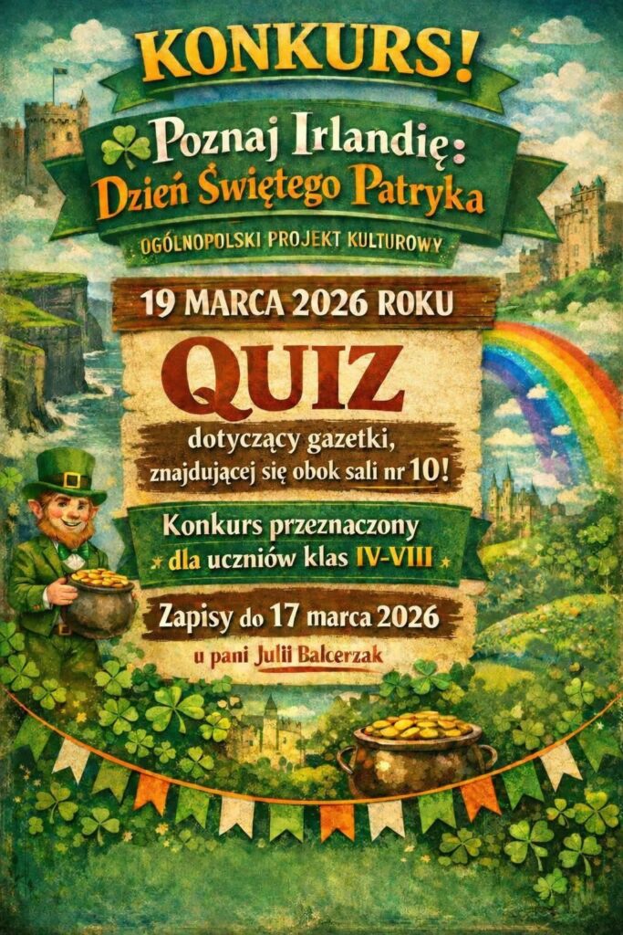 Nasza szkoła bierze udział w ogólnopolskim projekcie kulturowym: Poznaj Irlandię – Dzień Świętego Patryka.