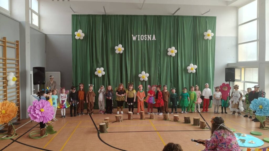 W dniu dzisiejszym klasy 0 zaprezentowały wiosenne przedstawienie, w którym wcieliły się w mieszkańców łąki i lasu. Zwierzątka przygotowywały sie na nadejście najważniejszego gościa- Pani Wiosny. Aktorzy oraz widownia z uśmiechem powitali kolorową i pachnącą porę roku. Po apelu cała społeczność przedszkolna i klasy I-III wybrały się na wiosenny pochód. Zapraszamy do podziwiania naszych przedszkolaków