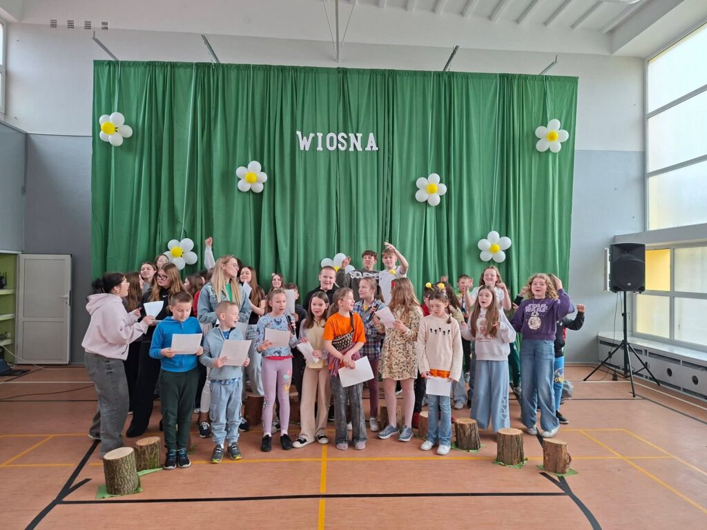 Wiosnę przywitaliśmy tak, jak trzeba – na wesoło, aktywnie i razem! Na dobry start – nauka prostego układu tanecznego, który rozkręciły nasze niezawodne cheerleaderki. Było dużo śmiechu, trochę potu i masa dobrej energii! Potem przyszła pora na szkolne karaoke – losowanie piosenek, spontaniczne występy i pełna współpraca. Jedni śpiewali, inni pomagali, a wszyscy świetnie się