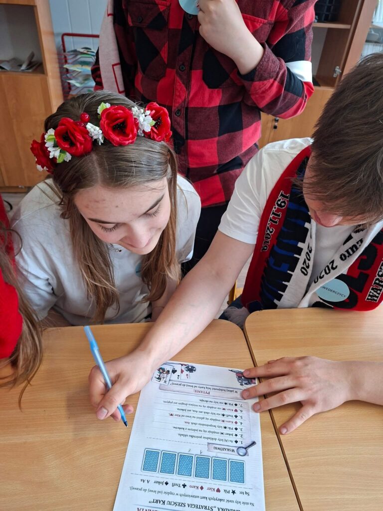 Uczniowie podzieleni na zespoły, wyruszyli na trasę pełną historycznych wyzwań. Na przygotowanych stacjach czekały na nich zadania, które sprawdzały nie tylko wiedzę, ale także sprawność i umiejętność współpracy.