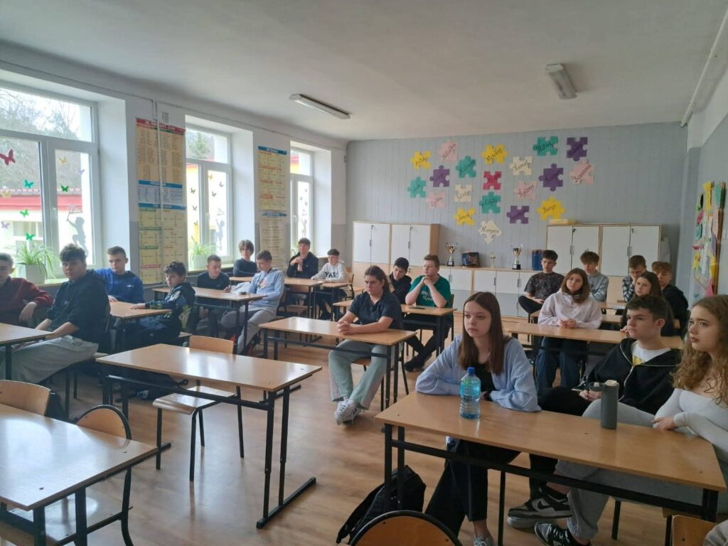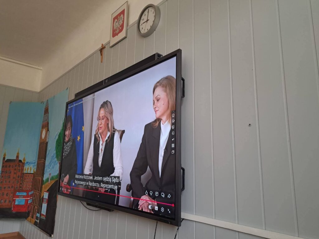 W ramach obchodów Dnia Edukacji Prawnej uczniowie klas 8 mieli okazję obejrzeć film edukacyjny przygotowany przez Ministerstwo Sprawiedliwości, poświęcony zawodom prawniczym.