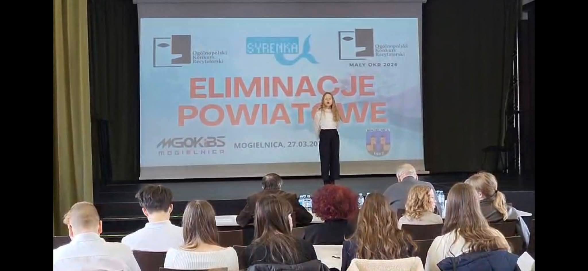 26 marca 2026r w sali widowiskowej MGOKiBS w Mogielnicy odbyły się powiatowe eliminacje Małego Konkursu Recytatorskiego, Warszawskiej Syrenki oraz Ogólnopolskiego Konkursu Recytatorskiego.