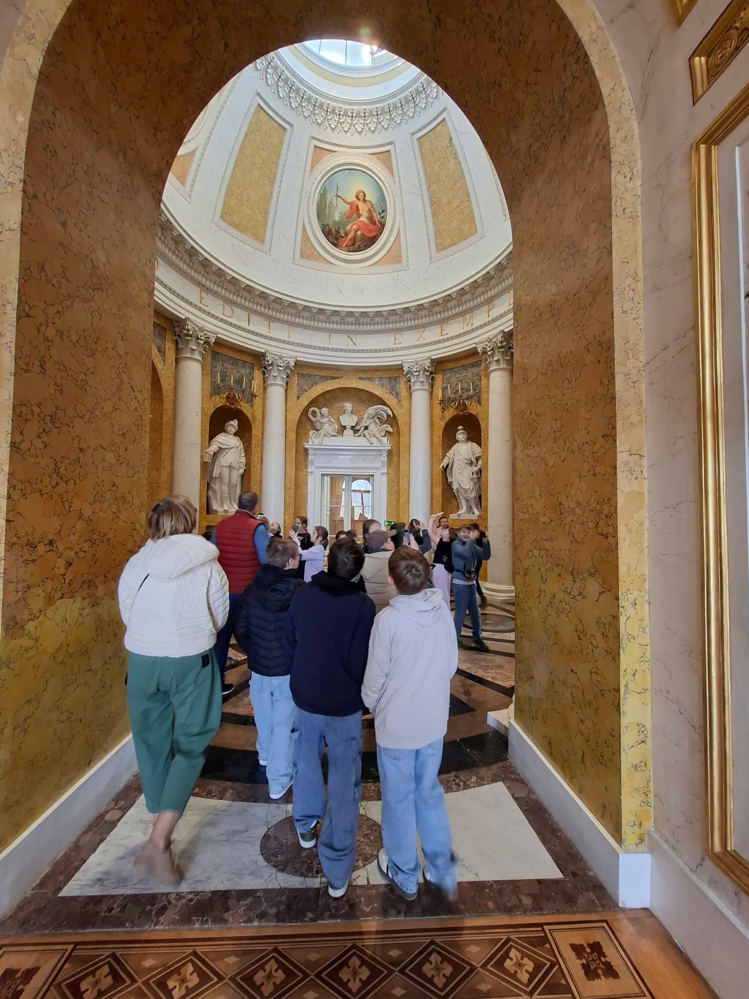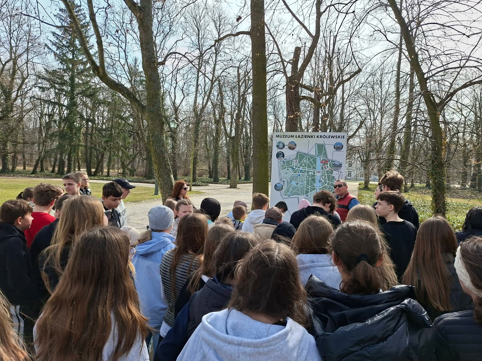 Następnie odwiedziliśmy Łazienki Królewskie – XVIII-wieczny zespół pałacowo-ogrodowy, letnią rezydencję króla Stanisława Augusta Poniatowskiego, obecnie muzeum. Położony na skarpie wiślanej, gdzie mogliśmy podziwiać liczne zabytki, w tym Pałac Zygmunta Augusta, Koszary Kantonistów, pomnik Chopina oraz altanę.